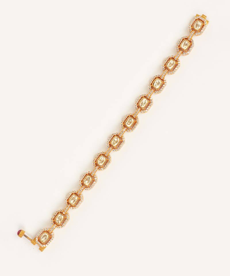 Product Description | An Exquisite Blend Of Elegance And Opulence, Featuring A Sparkling Moissanite Stone Bracelet In Lustrous Gold Plated Brass. Its Timeless Design And Refined Finish Make It A Perfect Statement Piece For Festive And Special Occasions.