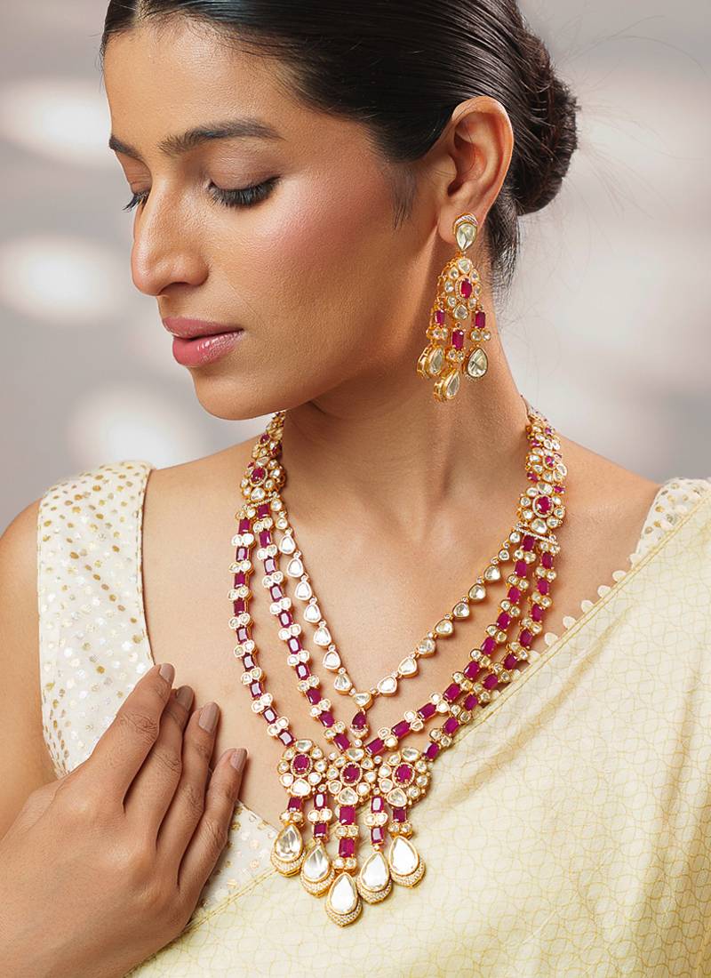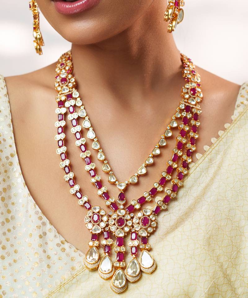 | Product Description | This Gold Plated Kundan Pink Stone Layered Necklace Set Exudes Regal Elegance And Feminine Charm. Featuring Beautifully Layered Strands Adorned With Delicately Set Pink Stones, It Showcases Intricate Craftsmanship And A Radiant Finish. Perfect For Weddings, Festive Celebrations, Or Special Occasions, It Adds Depth, Luxury, And Timeless Sophistication To Traditional Ensembles.