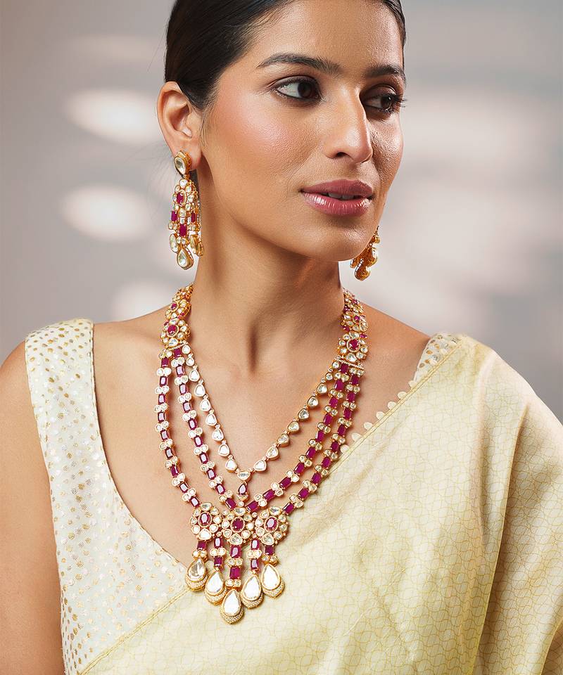 | Product Name | Gold Plated Kundan Pink Stones Layered Necklace Set | |