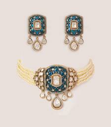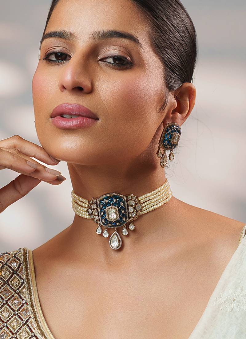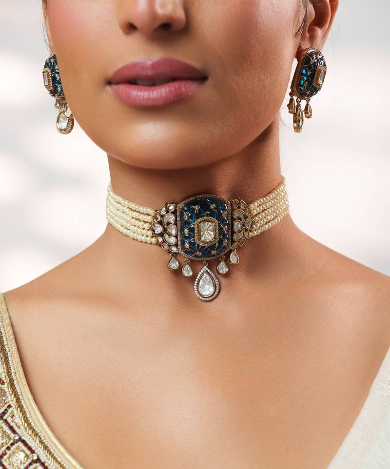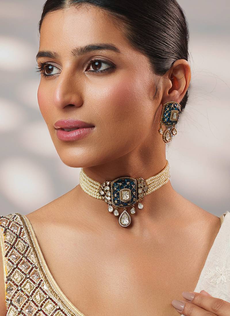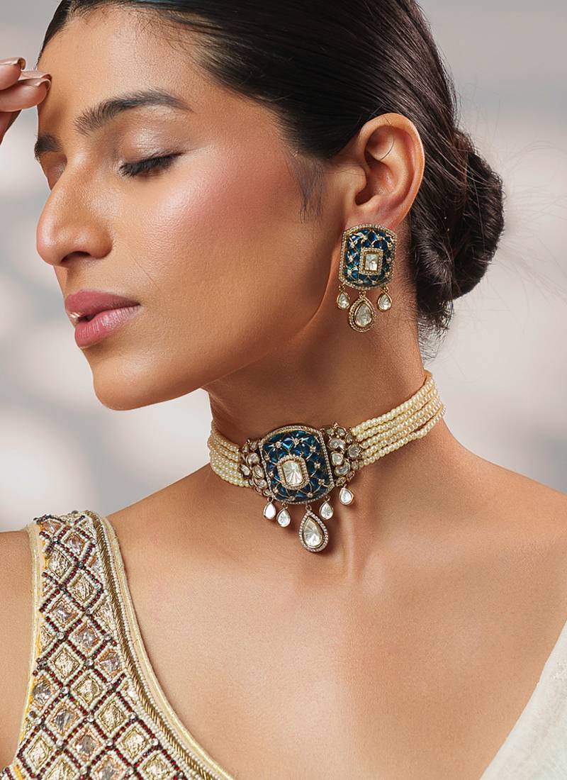 | Product Name | Two Tone Plated Kundan Blue Stone Choker Necklace Set | |
