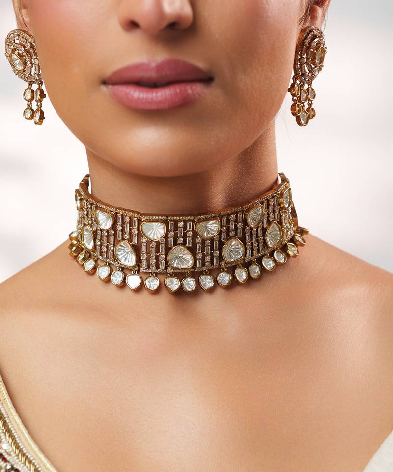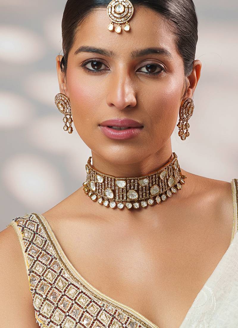 Gold plated kundan choker necklace set
