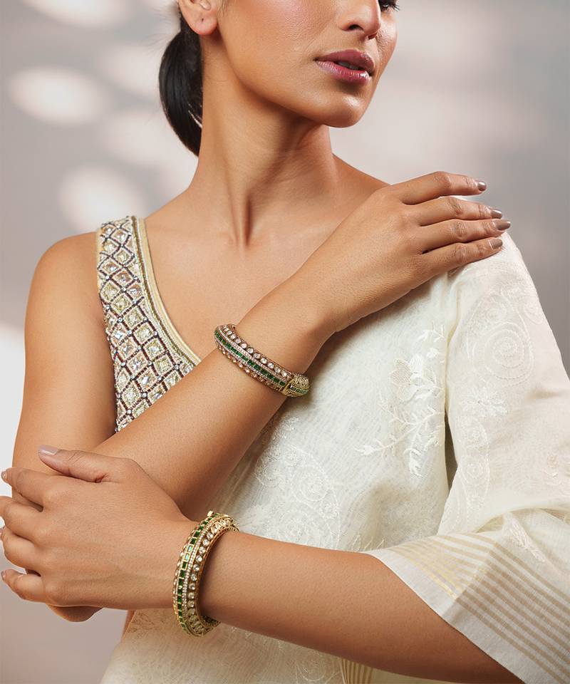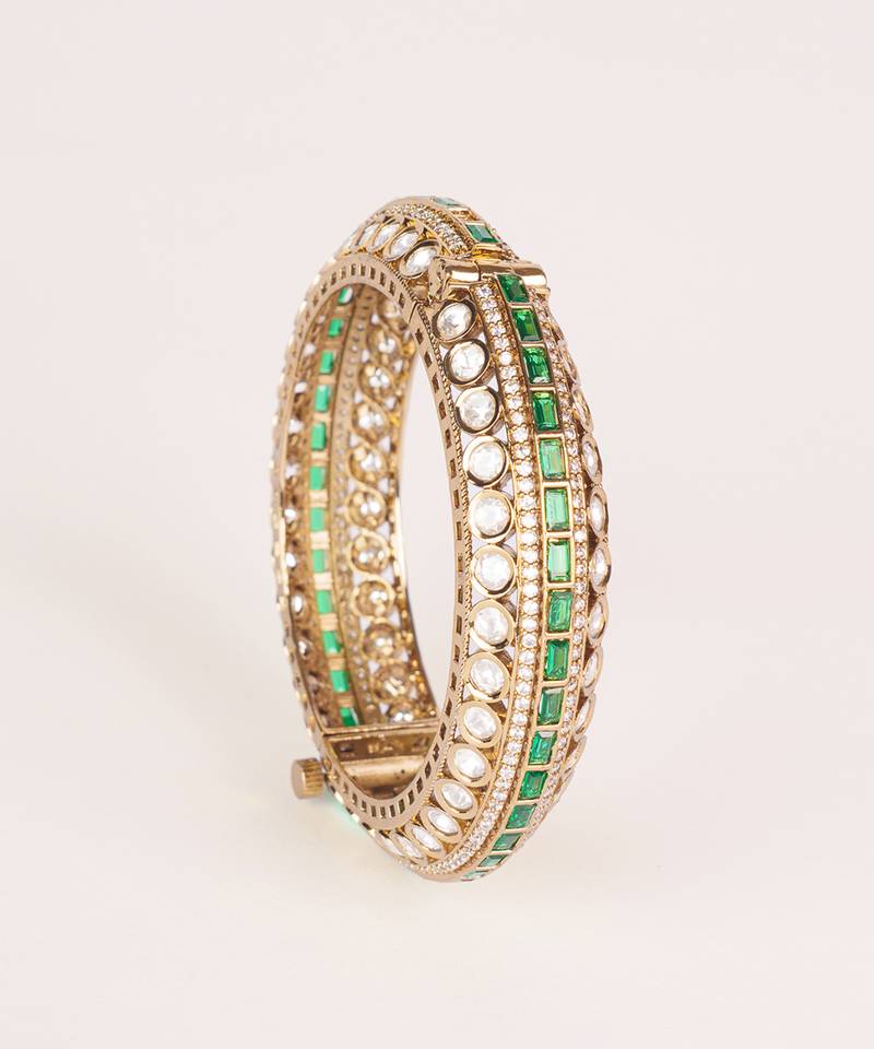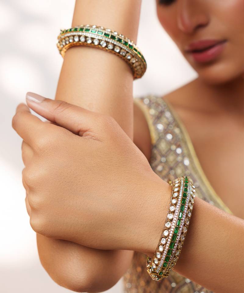 | Product Name | Two Tone Plated Kundan Green Stones Bangle | |