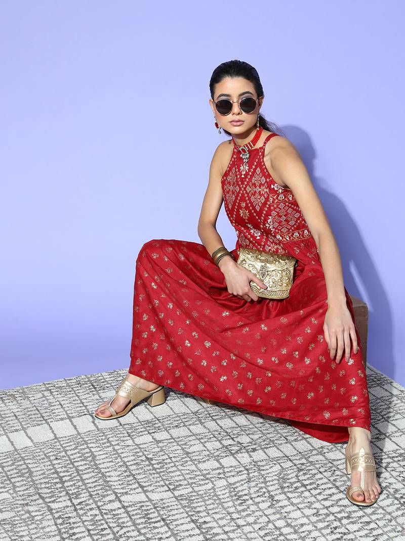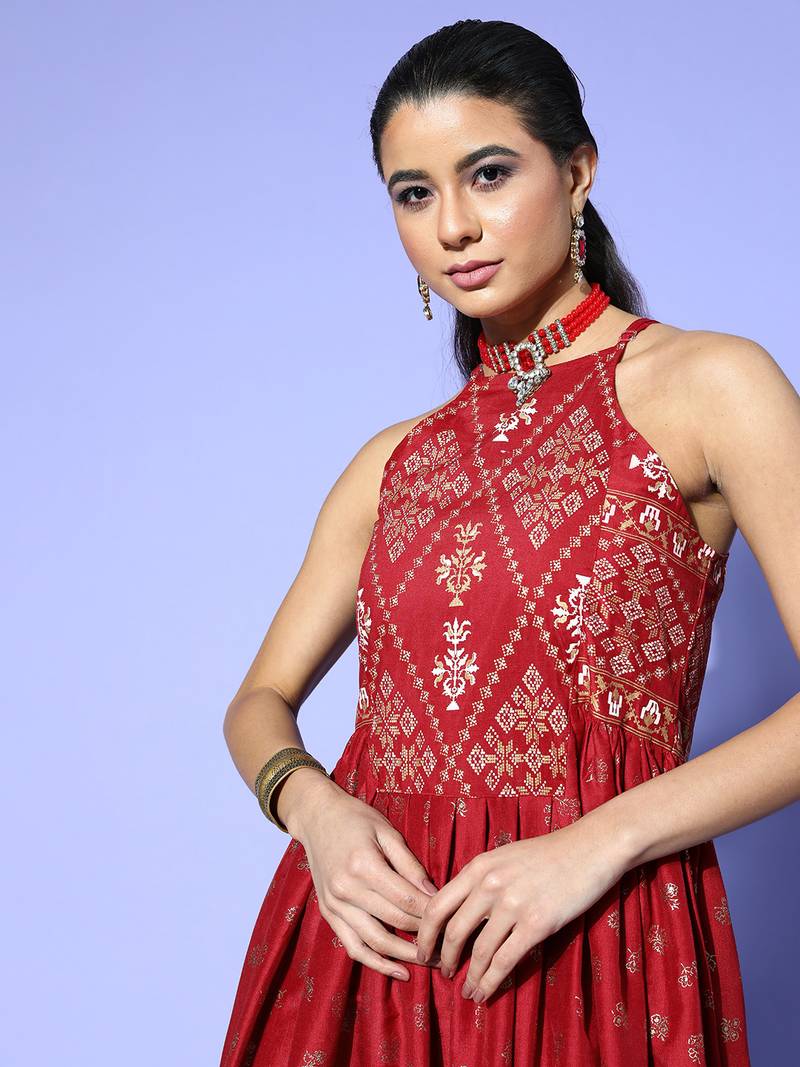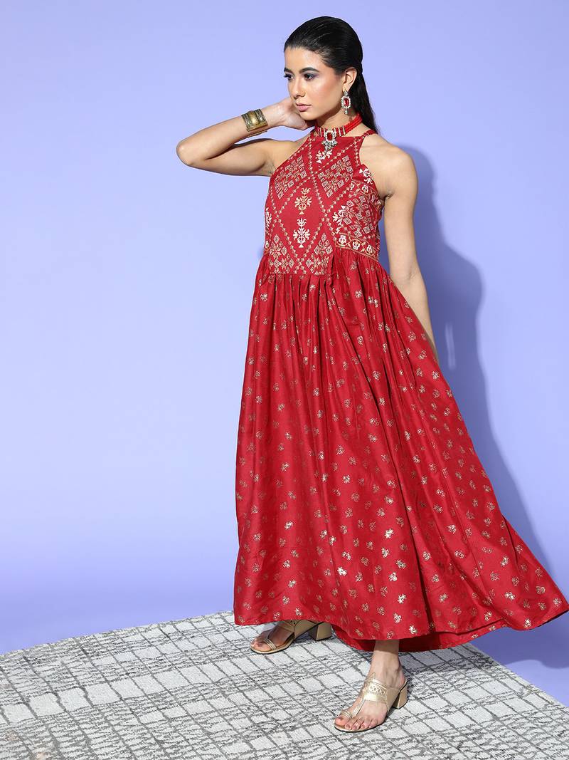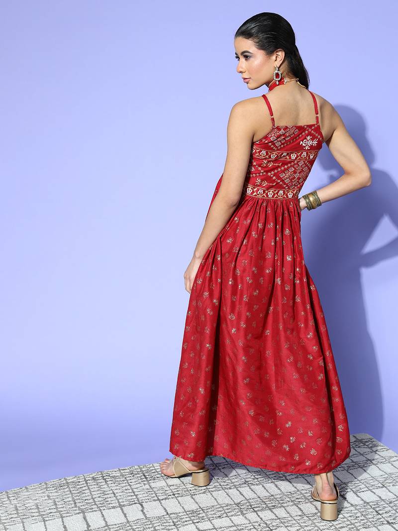 | Product Name | Maroon Printed Polyester Maxi Dresses | |