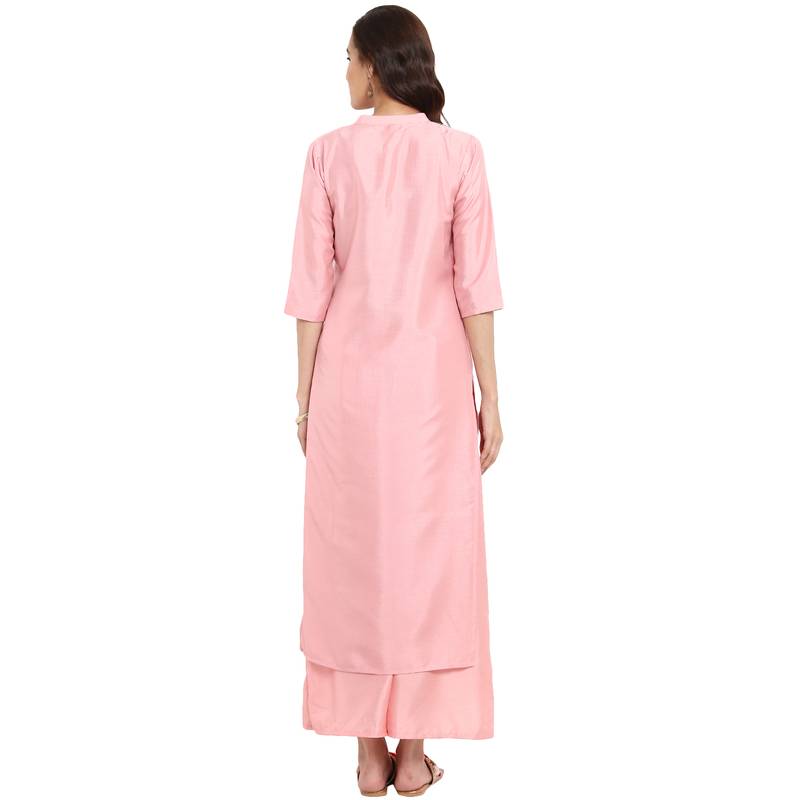 | Product Description | Flaunt Sartorial Elegance When You Wear This Pink Coloured Kurta By Ziyaa. Look Classy And Stylish In This Piece And Revel In The Comfort Of The Soft Poly Silk Fabric. Kurta Has Mandarin Neck With 3/4th Sleeve. Team It With Contrasting Churidar And Kolhapuris To Complete Your Look For The Day. |