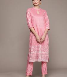 Pink printed art silk kurta sets