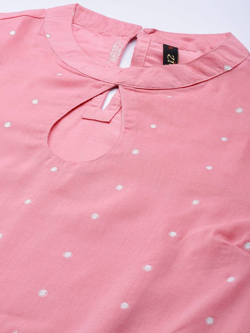 | Product Description | Light Pink Color Silver Foil And Pigment Prints Chinon Fabric Kurta Has Mandarin Neck, Three Quarter Sleeve, Side Slit And Straight Hem. Light Pink Color Pant With Elasticated Back Slip On Style. |