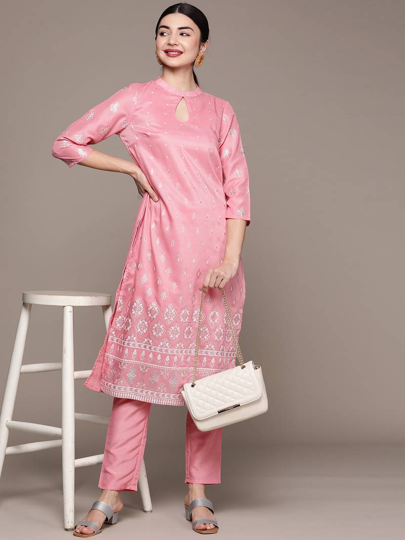 | Product Name | Pink Printed Art Silk Kurta Sets | |